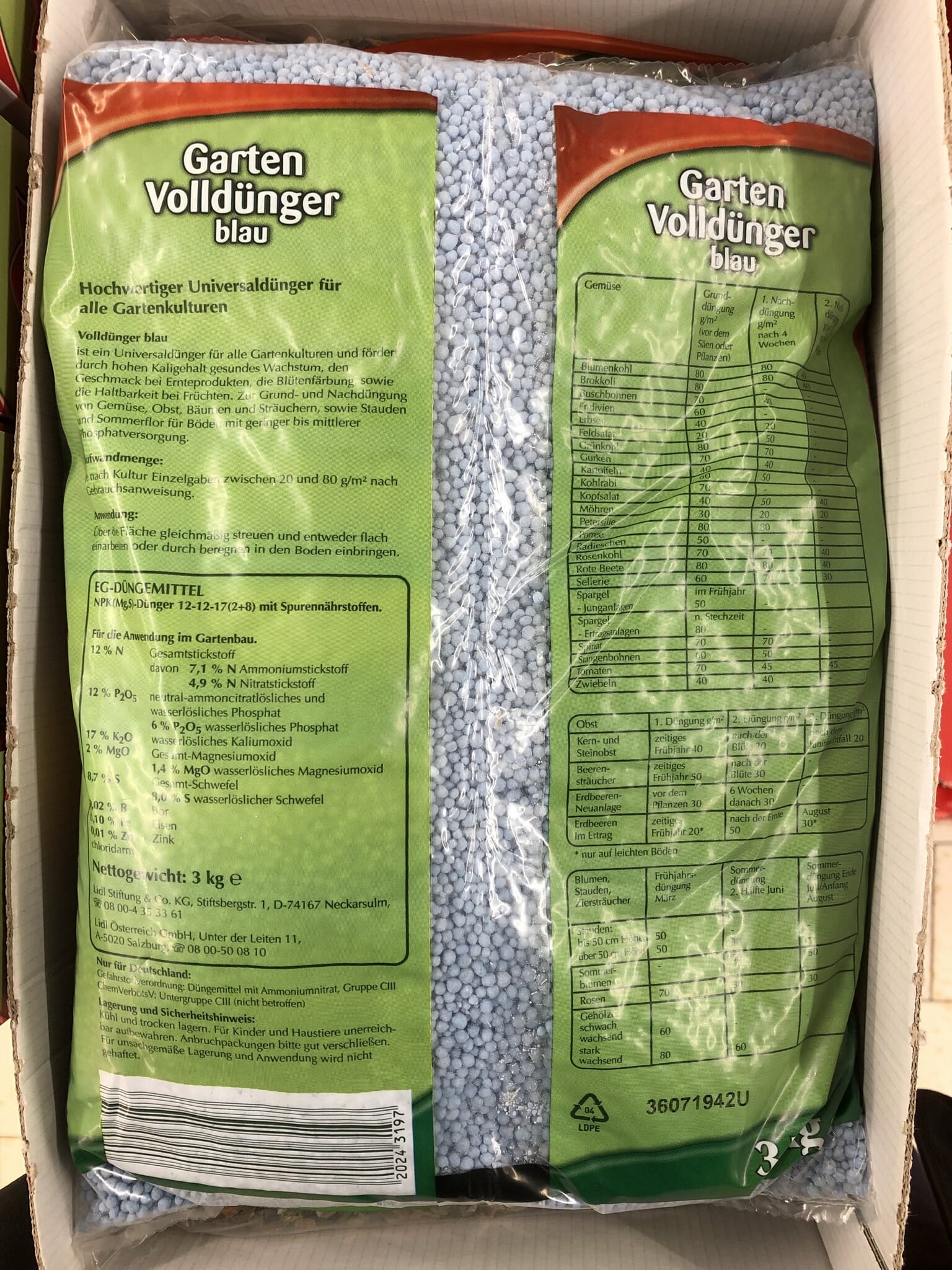Garten Volldünger blau Rückseite